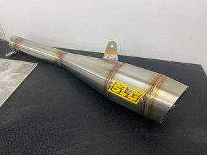 The SLG Megaphone is for the most extreme racers, it is our loudest pipe by far, if you want to announce your presence in a big way look no further than the SLG Megaphone exhaust. We use slightly thicker stainless materials than the competition therefor keeping that signature SLG deep non raspy tone. The Megaphone is only available as they come, they do not have the option of quieting them down nor do they accept a spark arrestor.